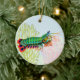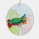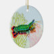 Original fine art painting of a colorful Peacock Mantis Shrimp by artist Carolyn McFann of Two Purring Cats Studio printed on a quality holiday ornament for coral reef diving, sushi and saltwater aquarium fans.