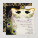 This elegant and sophisticated masquerade party invitation has a rich, elegant and mysterious appeal for a themed event. Created with a hand watercolored mask decorated with swirls and peacock feathers, and a parchment textured background along with a completely customizable background color on the front side. On the reverse side is a "gilded" frame border created from Vintage art elements and a pair of the peacock masquerade masks as well as your text. The front and rear backgrounds can be different colors if you are featuring 2 colors in your wedding. Just ask and we'll be happy to set them up for you. Every product shown can be created in any color you wish. PAPER SELECTION: This would be especially nice with the Champagne Ice metallic if your budget allows. This paper is MAGNIFICENT, it has a soft, creamy pearl finish that gives incredible elegance to your presentation. This would also look excellent with the felt, linen, Ice metallic or other premium papers as well as the wonderful quality, standard paper Zazzle prints on. YOU MIGHT ALSO ENJOY: