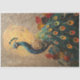 Delicate tilework mosaic of a peacock with its feathers on display.