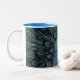 A peacock feather design done in blue, turquoise, teal, purple and pink. A very pretty contrast of colors and a nice change from the usual.