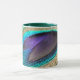 This beautiful mug is adorned by a picture of a peacock feather.