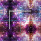 dramatic nebula with ghostly peacock feather overlay, the mirrored repeat gives it the look of tie dye from a distance. shades of purple, black, violet, blue, and orange, with scattered stars and nebula clouds.