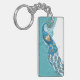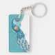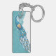 Peacock on Teal Illustration Keychain