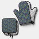Peacock Paisley Pattern Blue Oven Mitt & Pot Holder Set