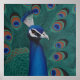 Add some color and elegance to your home with a poster of this stunning peacock painting. It features a close-up of a peacock's head, neck, and feathers in vibrant blue, green, brown, and white hues. The peacock's eye-catching plumage fills the poster with texture and detail. This poster is perfect for any room that needs a touch of beauty and sophistication. Whether you hang it in your living room, bedroom, or office, this peacock poster will surely impress your guests and brighten your mood. Don't miss this opportunity to own a poster of art that celebrates one of nature's most magnificent creatures. Buy yours today.