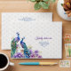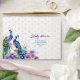 Peacock and purple flowers watercolor Indian wedding envelopes. Two beautiful peacocks purple jasmine flowers wisteria hanging blooms and garlands matching envelopes