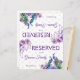 Peacock and purple flowers watercolor Indian wedding reserved sign. Two beautiful peacocks purple jasmine flowers wisteria hanging blooms and garlands reserved sign