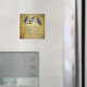 It was a bit smaller than expected, but I was too excited to check dimensions. The product itself send well printed though the grey text is a bit paint. Magnet worked perfectly on my fridge.