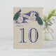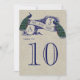 Burlap Linen Peacock Rustic Wedding Table Number Card. This gorgeous wedding table number card design is perfect for a Vintage Wedding with the ability to personalize with your monogram initials. Its unique design with Two Beautiful Peacocks on Vintage Banner and text "Mr. and Mrs." in a dark blue font all on a printed linen photo effect background, create a unique, stylish wedding table number card. Elke Clarke© Please order one table card with the first number on it. Then change the number in the edit menu and add the next table number card to your cart until you have one unique card for each table number in your cart. Need help or would like a different color combination, please contact luxuryweddinginvitations@gmail.com