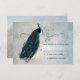 Stylish RSVP card with vintage peacock and ornate scroll top border on watercolor look background in blue tones. Back of invitation has same background with peacock feather. Coordinating pieces available in store.