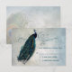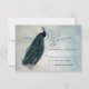 Stylish RSVP card with vintage peacock and ornate scroll top border on watercolor look background in blue tones. Back of invitation has same background with peacock feather. Coordinating pieces available in store.