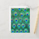 Array of stunning peacock feathers in shades of teal, blue, green, aqua.