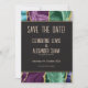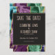 This "Save the Date" card glimmers with the elegance of nature’s artistry, where stone and shimmer meet in harmony. Like treasures carved by the earth, slices of agate shine in graceful bands of peacock hues, each edge kissed with molten gold. The striking composition captures the organic beauty of natural stone, elevated by a touch of opulence.