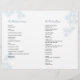 A peacock's call is brought to mind on this wedding program flyer. A classic illustration of a peacock in a tree in shades of light slate blue frames your customized text while the flowering branch is used as a watermark on both the exterior and interior. Just fold in half to make a booklet. Available in alternate colors with a range of matching products.