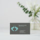 An elegant card featuring an art deco vignette of brightly hued aqua peacocks on a gray background. The back of the card allows space for web address, quote, or more info. © 1201AM DESIGNS