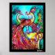 PEACOCKS IN LOVE, Red Yellow Turquoise Blue Poster