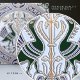 This stunning ceramic tile features a symmetrical peacock feather pattern inspired by the Art Deco and Belle Epoque periods. The Belle Epoque, or "beautiful era," was a time of artistic and cultural flourishing in Europe from the late 19th to early 20th century. The peacock feather was a popular motif during this time, symbolizing luxury, beauty, and renewal.