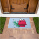 Enjoy this Peanuts holiday design featuring Snoopy sleeping on his dog house beside his Christmas tree.