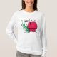 Enjoy this Peanuts holiday design featuring Snoopy sleeping on his dog house beside his Christmas tree.