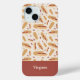 A phone case with peanuts pattern and, at the bottom, a customizable first name or text of your choice on a reddish brown background. A lovely gift for a friend who loves nuts.