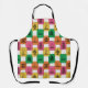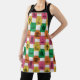 Great color and even though I ordered the kid size, it covers well enough to use during the holidays. I am not a big woman and prefer a shorter apron. I stand 5"6" and the length of the garment goes to mid-thigh. The tie straps fit well at my waist and even though there is no neck strap adjustment, the opening is plenty big enough. I am happy with the size and fit. I am sharing my apron with my 10 year old grandson, too! The color is vibrant and looks good, as shown on the website. The stitching looks strong and reinforced. Photographed is front side and back side of the apron, reinforced straps and coloring. My phone camera may not be the best at showing the details.