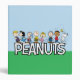 Check out this lineup of the Peanuts gang together, featuring Schroeder and Lucy, Linus with his blanket, Charlie Brown and his sister Sally, Pigpen, Franklin watching Snoopy dance, and Woodstock flying overhead.