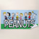 Check out this lineup of the Peanuts gang together, featuring Schroeder and Lucy, Linus with his blanket, Charlie Brown and his sister Sally, Pigpen, Franklin watching Snoopy dance, and Woodstock flying overhead.