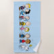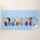 Check out this lineup of the Peanuts gang together, featuring Schroeder and Lucy, Linus with his blanket, Charlie Brown and his sister Sally, Pigpen, Franklin watching Snoopy dance, and Woodstock flying overhead.