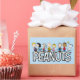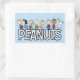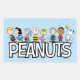 Check out this lineup of the Peanuts gang together, featuring Schroeder and Lucy, Linus with his blanket, Charlie Brown and his sister Sally, Pigpen, Franklin watching Snoopy dance, and Woodstock flying overhead.