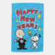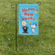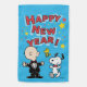 Celebrate the start of the year with this cheerful, officially licensed Peanuts Happy New Year Garden Flag. Set against a vibrant bright blue background, the flag features a festive scene with Charlie Brown dressed in a classic tuxedo, and Snoopy happily dancing in a red bow tie. They are joined by Woodstock amid a flurry of colorful confetti and stars. The bold, red lettering across the top proclaims "HAPPY NEW YEAR!" making it a perfect seasonal decoration. This flag is designed to be displayed outdoors instantly adding a whimsical and festive welcome to your yard, porch, or entryway for your New Year's celebrations.