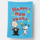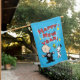 Make your home festive for the holiday with this cheerful, officially licensed Peanuts Happy New Year House Flag. This large, weather-resistant fabric flag features a vibrant bright blue background and a celebratory scene with Charlie Brown dressed smartly in a tuxedo, and Snoopy happily dancing with a red bow tie. They are joined by Woodstock amid colorful confetti and stars. The bold, red lettering across the top proclaims "HAPPY NEW YEAR!" Designed to hang vertically from a standard flagpole mounted near a porch or entryway, this flag instantly adds a whimsical and welcoming touch of Peanuts charm to your New Year's Eve and New Year's Day celebrations.
