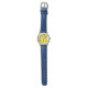 This watch is exactly what I expected. It is easy to set the time and the fit is perfect! The blue band is great for a boy and the sports theme was a hit!