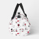 I actually had been searching other sites for a duffle gym bag and I couldn't find any. This one is just what I was looking for with all the features. The inside zip pocket, the outside mesh pocket and LOTS of room inside. Love the printing. Really like how the floral print turned out.