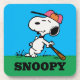 Snoopy, the beloved beagle from the Peanuts comic strip, is often depicted playing baseball with his feathered friend Woodstock and the rest of the Peanuts gang. Here he is featured while at bat.