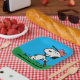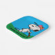 Snoopy, the beloved beagle from the Peanuts comic strip, is often depicted playing baseball with his feathered friend Woodstock and the rest of the Peanuts gang. Here he is featured while at bat.