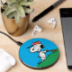 Snoopy, the beloved beagle from the Peanuts comic strip, is often depicted playing baseball with his feathered friend Woodstock and the rest of the Peanuts gang. Here he is featured while at bat.