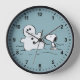 I received this as a birthday gift from my husband to replace a clock that had broken. It was perfect, pictures of my sweet family to see at every hour of the day. The size of the pictures looks nice for the size of the clock and I love looking at it! The only downside is there is no cover for the battery on the back, which makes me nervous having little kids running around the house, but an easy fix with some tape. The printing turned out clear, considering they were all cell phone pictures. Some of them look slightly grainy upon getting close up. But so nice overall!