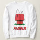 Keep cozy while celebrating the little ones with this charming Peanuts Nana Sweatshirt! This fun, long-sleeve shirt features Snoopy taking a comfy nap on his famous red doghouse. The text proudly displays "NANA" in cheerful red lettering, making it the perfect customizable piece for any grandmother. It's ideal for keeping warm while attending a child's birthday party or just showing off your favorite Peanuts Gang character year-round!