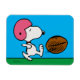 This design features Snoopy, Charlie Brown's beloved beagle, attempting to kick the football himself.