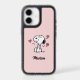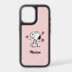 Dial up the cuteness with a phone case that is uniquely yours! This adorable pink case features Snoopy in his sweetest pose—clasping his paws with joy amidst floating hearts. The best part? You can customize it with your own name in a stylish black script at the bottom. It’s the perfect blend of personal style, protection, and Peanuts charm.