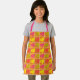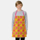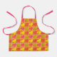 Great color and even though I ordered the kid size, it covers well enough to use during the holidays. I am not a big woman and prefer a shorter apron. I stand 5"6" and the length of the garment goes to mid-thigh. The tie straps fit well at my waist and even though there is no neck strap adjustment, the opening is plenty big enough. I am happy with the size and fit. I am sharing my apron with my 10 year old grandson, too! The color is vibrant and looks good, as shown on the website. The stitching looks strong and reinforced. Photographed is front side and back side of the apron, reinforced straps and coloring. My phone camera may not be the best at showing the details.