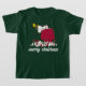 Celebrate the holidays and your love of Peanuts with this Ugly Christmas sweater design featuring Snoopy and Woodstock perched on Snoopy's dog house looking over a pile of gifts.