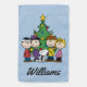 Enjoy this Peanuts holiday design featuring the gang gathered around the Christmas Tree.