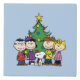 Enjoy this Peanuts holiday design featuring the gang gathered around the Christmas Tree.