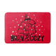 This rug is just as pictured! Vibrant Red and very soft material, nice to step in out of the tub! Matches my set of accessories and shower curtain! A must have to add some whimsy to your bathroom! Very nice, vibrant and clear print! Beautiful!