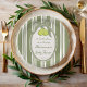 Pear sage green retro stripes baby shower personalized paper plates, retro oval frame hand drawn preppy bow pear baby shower monogrammed paper plates, hand written whimsical baby shower personalized paper plates, pear baby shower party supplies personalized baby shower table decor