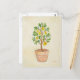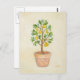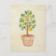 Dwarf pear tree growing in a terra cotta container, on this postcard.