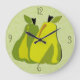 this PEAR wall clock with its bold greens, yellows and simple artwork would make a FUN ACCENT PIECE for your kitchen. artwork by kaps images