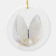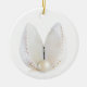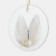 Lightweight, smooth, pure white ornament with nice sheen. Perfect size to be seen from across the room ... and to attract closer inspection! Price was great for ordering enough for the whole family! Clear, bold black design just as requested. Matches the order exactly. Just so nice!