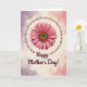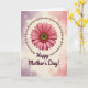 Designed with a large daisy-like flower at the center, the card shows many layered petals shaded from soft blush pink to deeper coral, like a gentle hug ❤️. The flower’s middle is a fresh green circle with a reddish-brown textured ring around it, adding natural contrast. Encircling the bloom is a continuous strand of creamy pearls with a soft sheen, giving the scene a tender, cherished feel. Behind everything, a watercolor-style wash fades from pale lavender into warm rosy pink over a creamy beige base. The lighting looks diffused and even, so the petals appear smooth and the pearls catch small highlights without harsh shadows. Near the bottom, the text “Happy Mother’s Day!” sits centered in deep burgundy, written in flowing cursive-style lettering. A few tiny pearl reflections sparkle along the lower curve of the strand, with the pastel background softly misting outward 🌼.